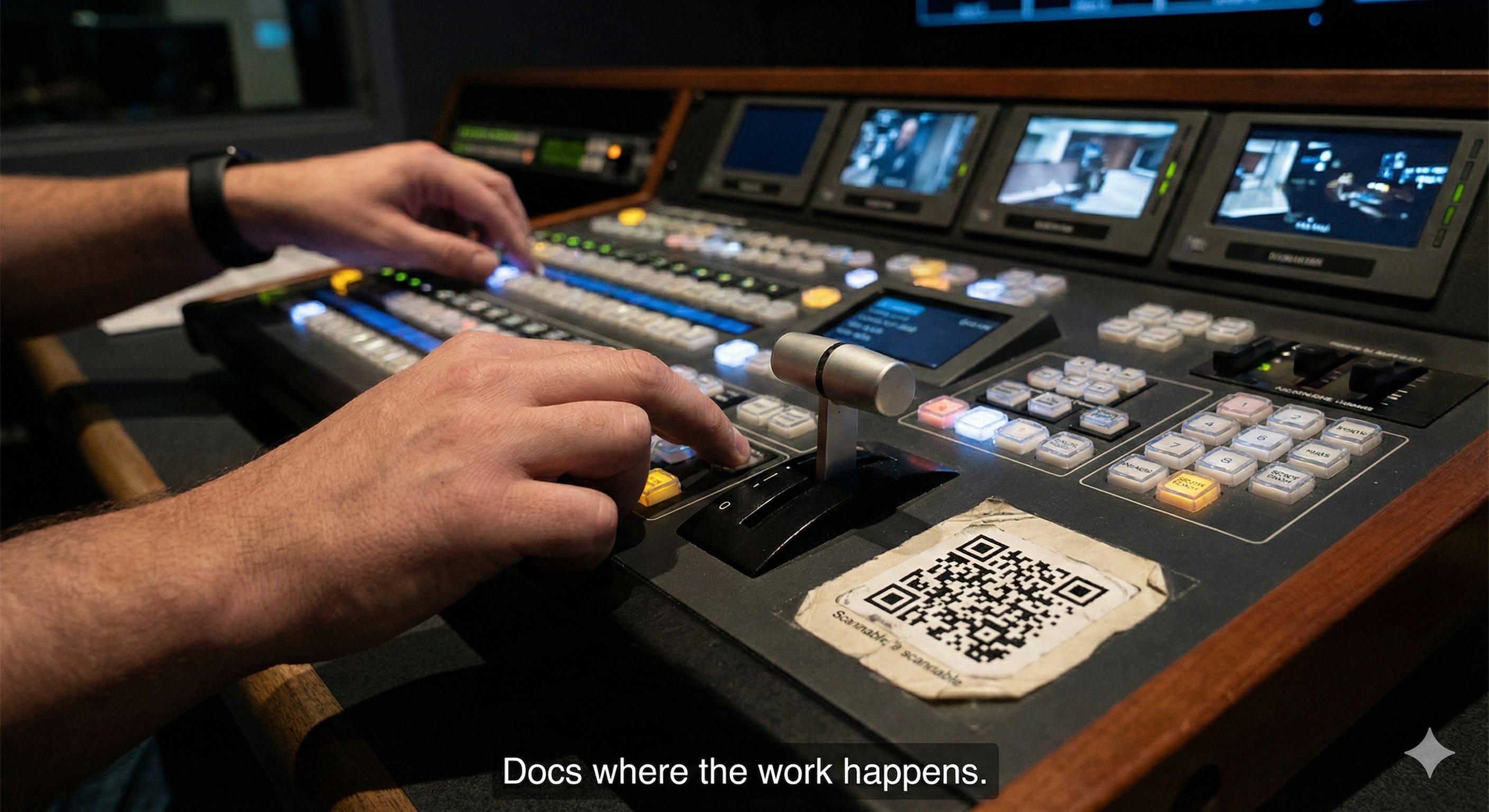 Print a QR and tape it to the router, comms base, flypack lid, or studio door. If they can scan it, they will use it. For commentators coming to your shows, place a short instruction sheet with a QR on the cabin door.